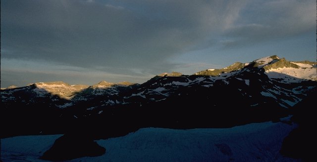 Looking to the west, each bank of clouds appeared thicker and lower than the preceding one. With the shadow of Mt. Ritter still hanging over the canyon, we decided to bail out and head for shelter.